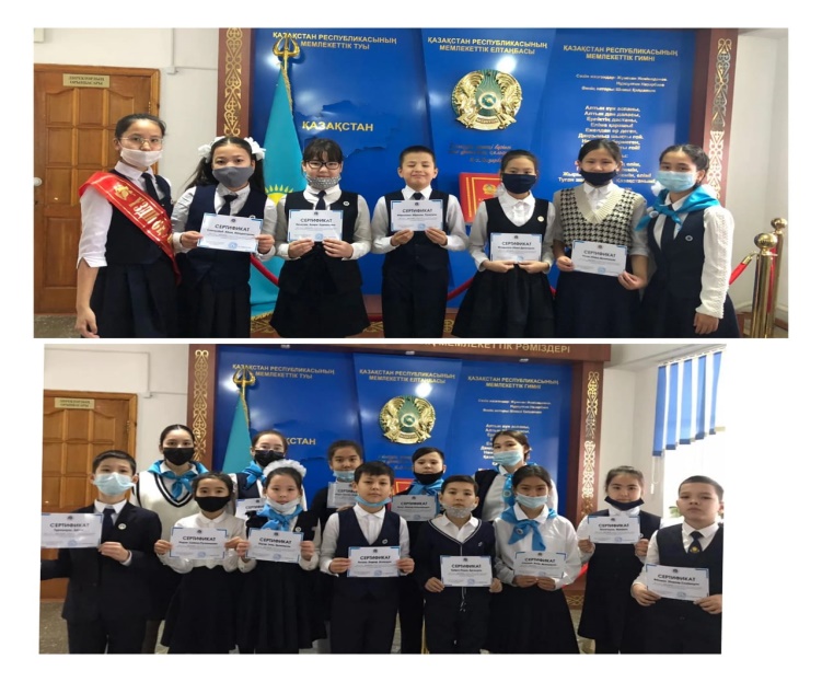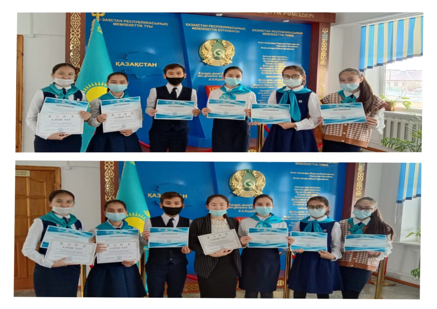 2021 жылы желтоқсан айында «Жас Ұлан» бірыңғай балалар мен жасөспірімдер ұйымының қатарына қабылданғаны үшін жас ұлан мүшелеріне сертификат табыс етілді.