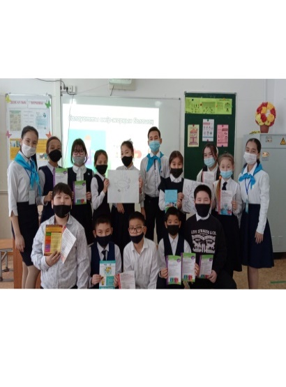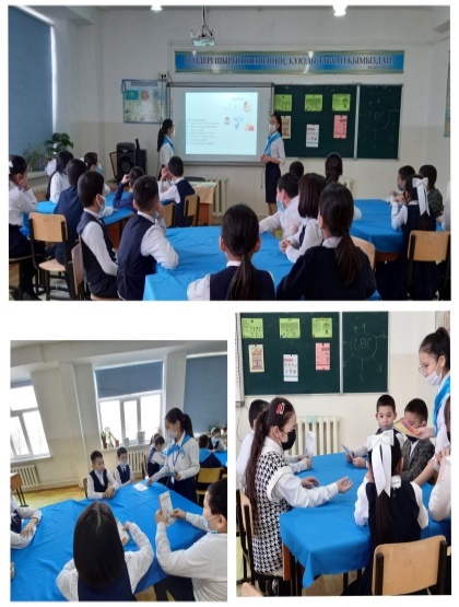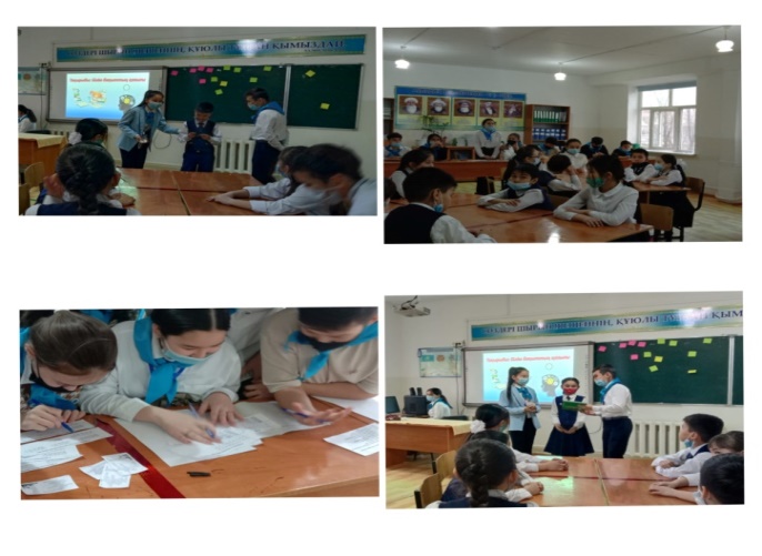 Ағымдағы жылдың 4 ақпан күні "Жас Ұлан" балалар мен жасөспірімдер ұйымының іс - шара жоспарына сәйкес ұйым мүшелері Сағынғалиева Дильназ және Дастемова Венераның ұйымдастыруымен 5 сынып оқушыларына "Салауатты өмір - жарқын болашақ" атты тренинг сағатын өткізді.