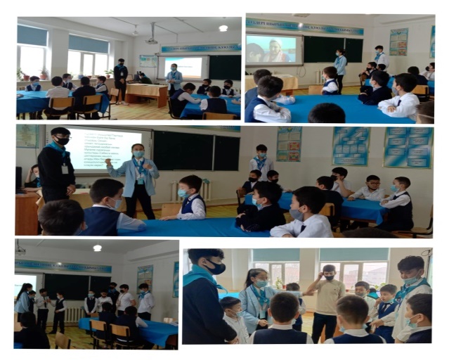 2022 жылдың 11 ақпан күні "Жас тәртіп сақшылары" клубының жоспарына сәйкес "Жас Ұлан" ұйымының белсенді мүшелері Жанқұл Ерасыл, Аскатов Даулет және Сағынғалиева Дильназдың ұйымдастыруымен құқық бұзушылық пен қылмыстың алдын алу мақсатында 4 "б" және 5 "а" сыныбының ұл балалары қатынасуымен "Тәртіп - тәрбие бастауы, тәртіпсіздік өмірдің қас жауы" тақырыбында тәрбие сағаты өтті.