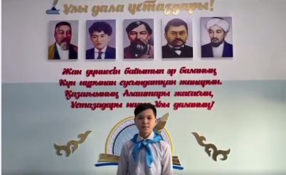 "Тарихи тұлғалар тағылымы" жобасы аясында оқушыларды тарихымызды білуге, жалпы адамзаттық құндылықтарды бағалауға, отансүйгіштікке, еліміздің, туған жердің әлеуметтік, мәдени дамуына үлес қосқан тұлғалардың өмірі мен өнегесін насихаттау мақсатында мектебіміздің оқушылары дайындаған бейнероликті ұсынамыз.