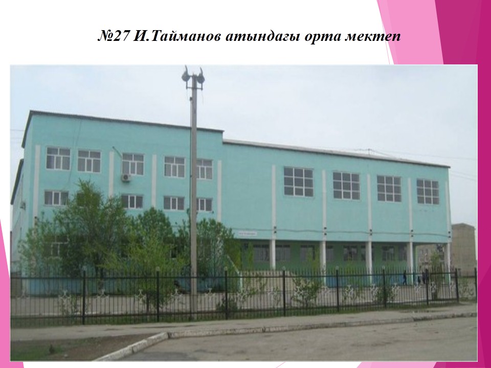 ММ “ЖАЛПЫ БІЛІМ БЕРЕТІН №27 И.ТАЙМАНОВ АТЫНДАҒЫ ОРТА МЕКТЕБІ”