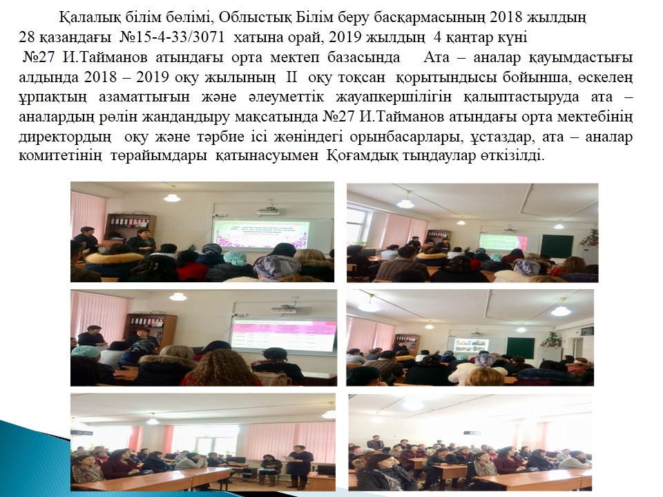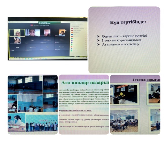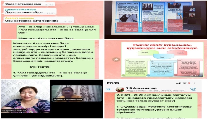 Ағымдағы жылдың 15 - 16 қыркүйек күндері Атырау қаласы №27 И.Тайманов атындағы орта мектебінде ZOOM және WhatsApp платформасында ата-аналар жиналысы өтті.