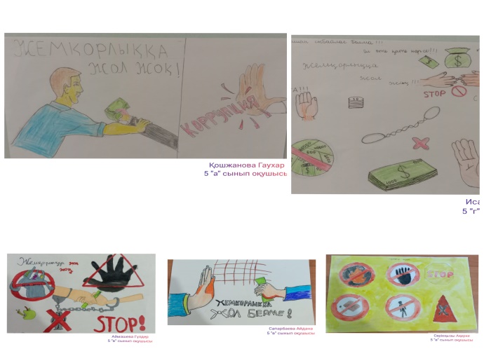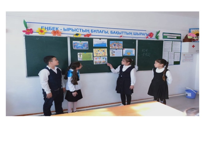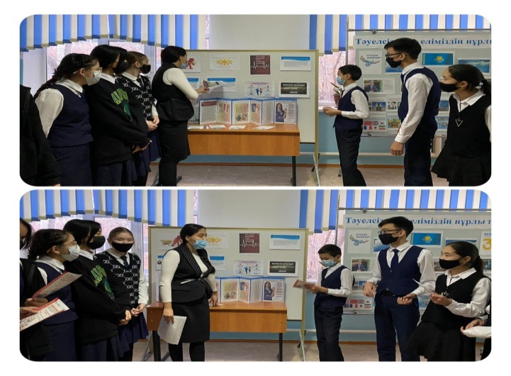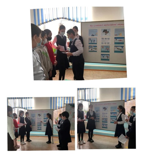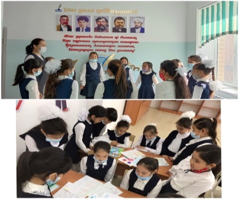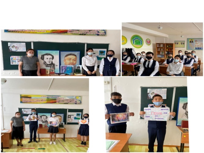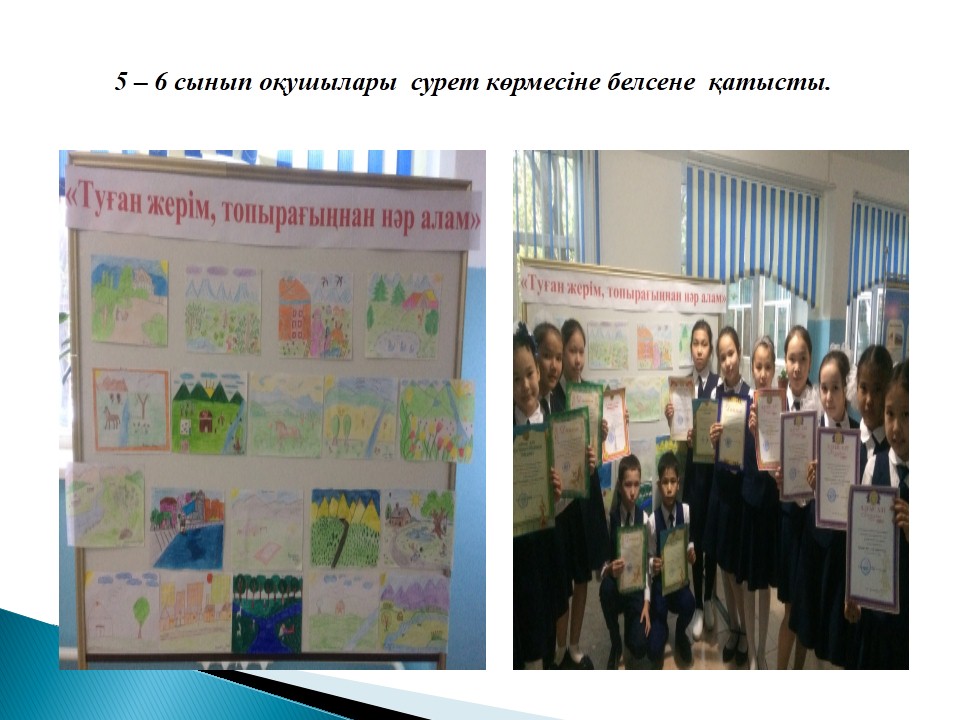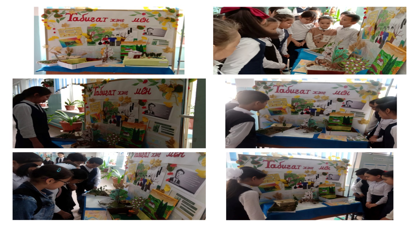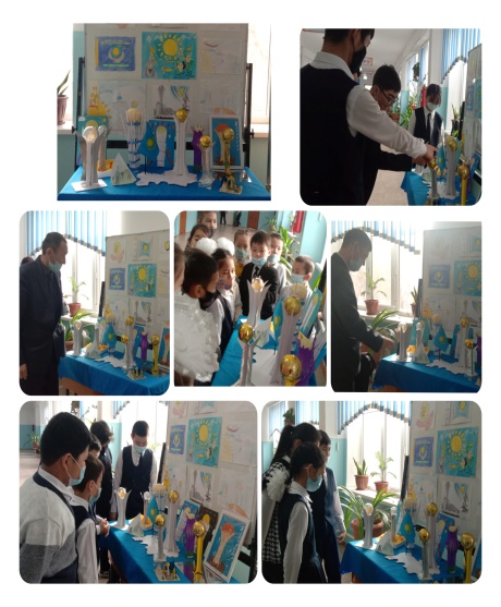 Оқушылардың шығармашылық жұмыстары ілініп, көрме жасақталды.