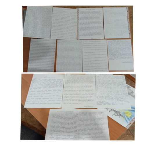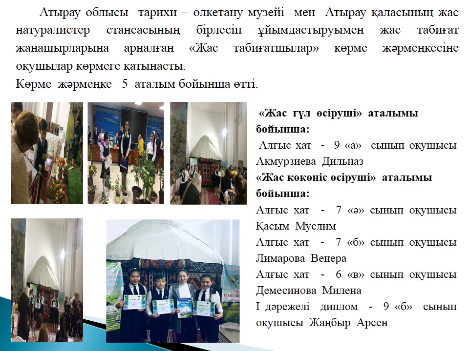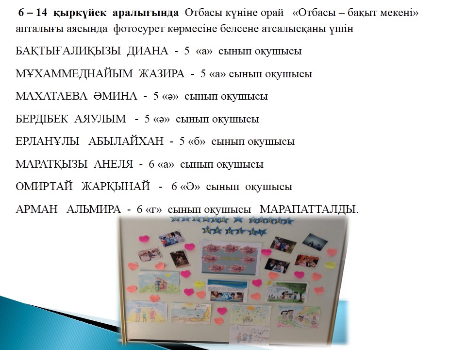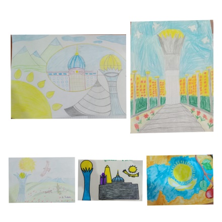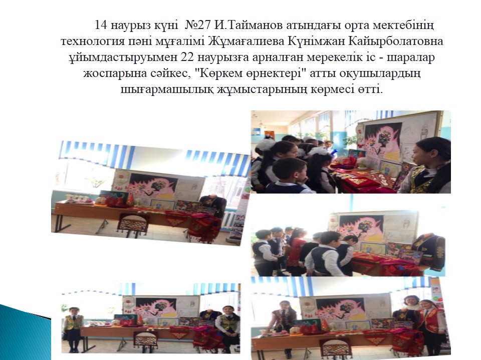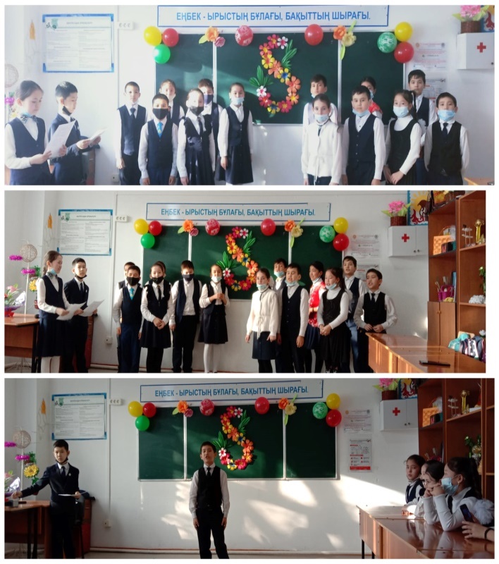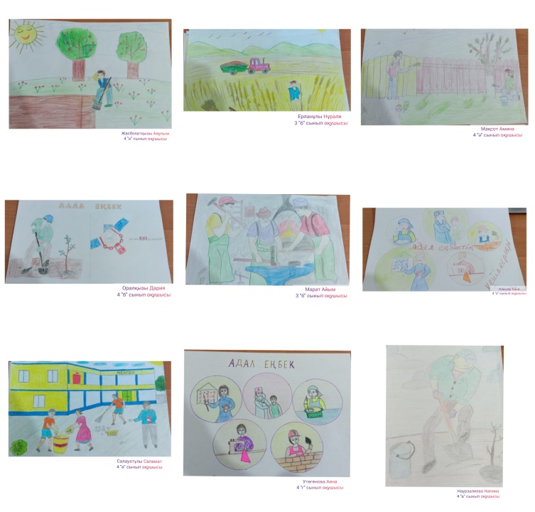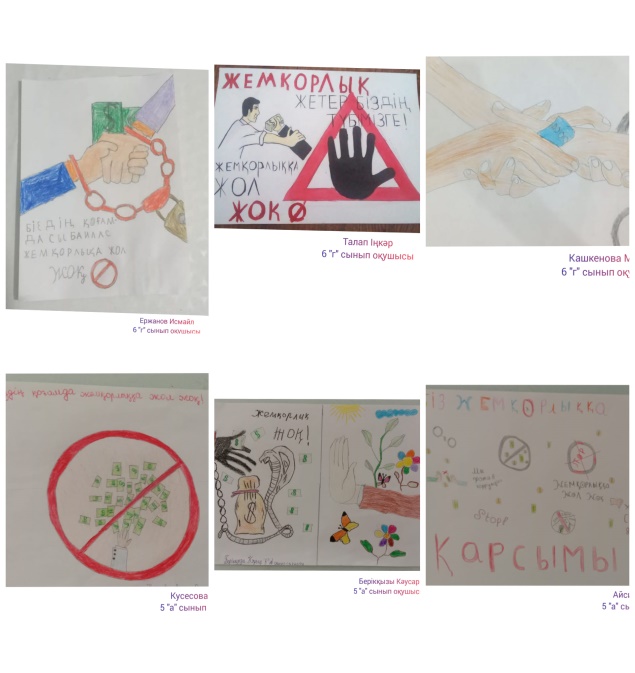 Оқушылардың шығармашылық жұмыстары ілініп, көрме жасақталды.