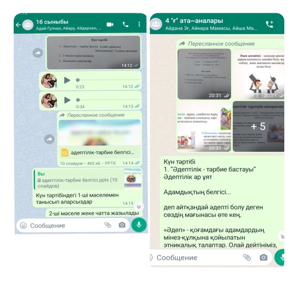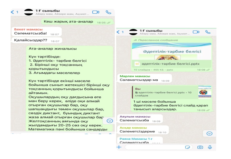 Ағымдағы жылдың 17 - 18 қараша күндері ZOOM және WhatsApp платформасында ата-аналар жиналысы өтті.