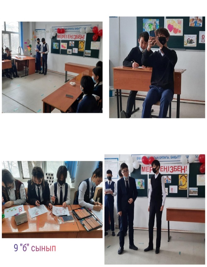 15 мамыр - Халықаралық отбасы күніне арналған іс-шаралар жоспарына сәйкес отбасы құндылықтарын насихаттау, ата-анасы мен жақындарын құрметтеу сезімдерін нығайту, ұрпақтар сабақтастығын дамыту мақсатында сыныптарда сынып сағаттары өтті және сынып оқушыларының дайындаған фотоколлаж және бейнероликтер жасақталды.