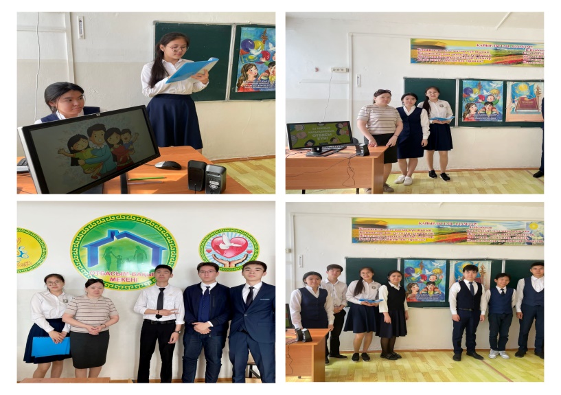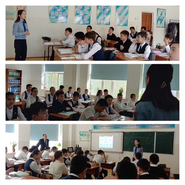 Қазақстан Республикасы Президентінің жарлығымен 2022 жыл жарияланған балалар жылы аясында ағымдағы жылдың 11-15 сәуір аралығында "Мен және менің полицейім" тақырыбында имидждік акциясы барысында кәмелетке толмағандардың құқықтық сауаттылығын қалыптастыру, отбасылық және рухани құндылықтарды насихаттау мақсатында және кәмелетке толмағандарды полиция жұмысымен таныстыру, қауіпсіздік шараларын үйрету мақсатында Атырау қаласы №2 ҚПБ ЖПҚБ ЮПТ УПИ-і полиция аға лейтенанты Гузель Куркембаева мектебіміздің оқушыларымен "Полицей - дос және қорғаушы" тақырыбында әңгіме сағаты мен ашық сұхбат өткізілді. Шара барысында оқушылар өз сұрақтарына жауап алды.