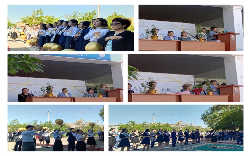 Салтанатты шараның шымылдығы еліміздің Әнұранымен ашылды. Алғаш болып сөз алған мектеп директорының уақытша міндетін атқарушы С.Жаниева оқушылар мен ұстаздарды мерекелерімен құттықтап, мектеп бітіруші түлектерге ақ тілегін жеткізді.