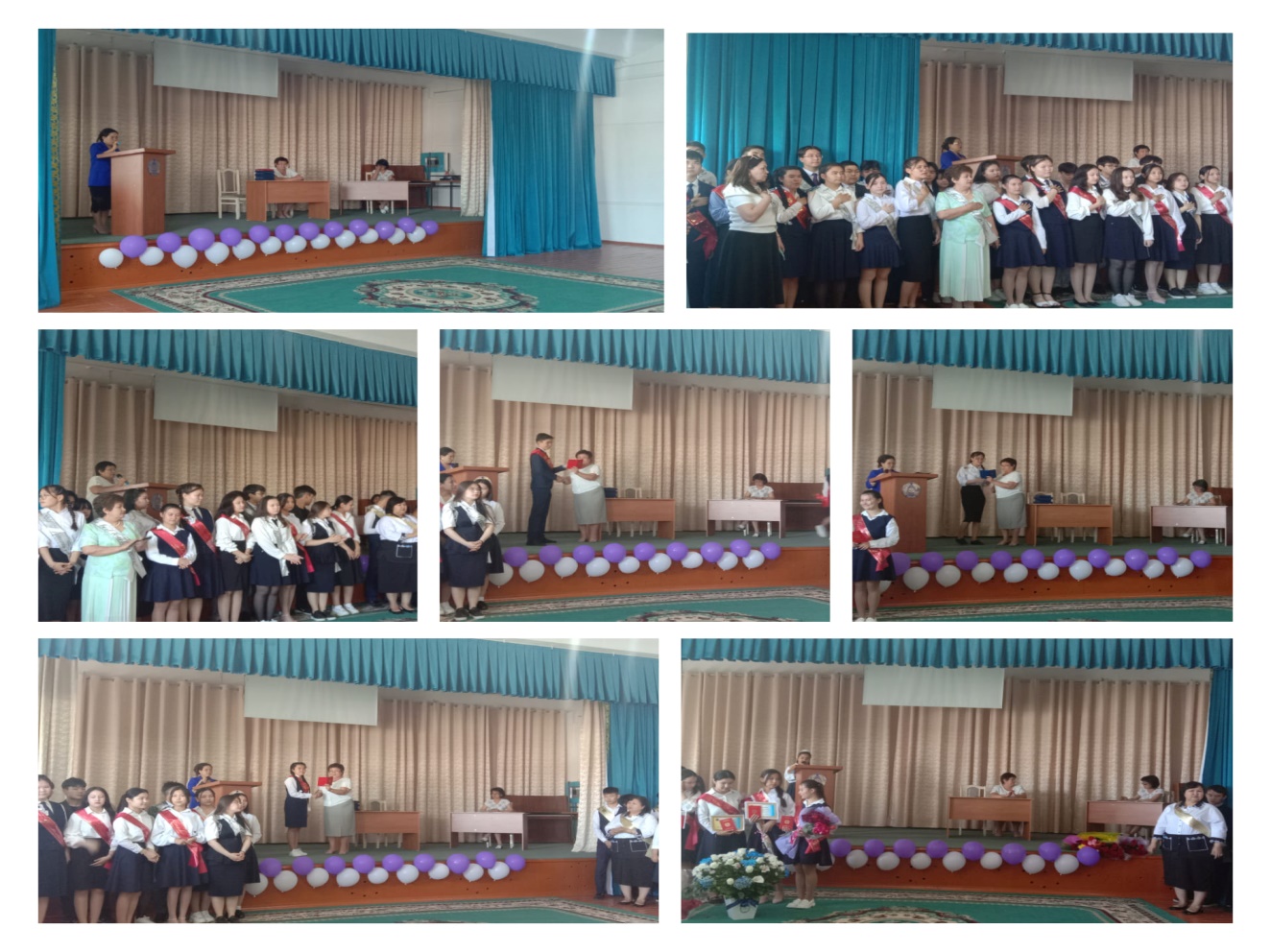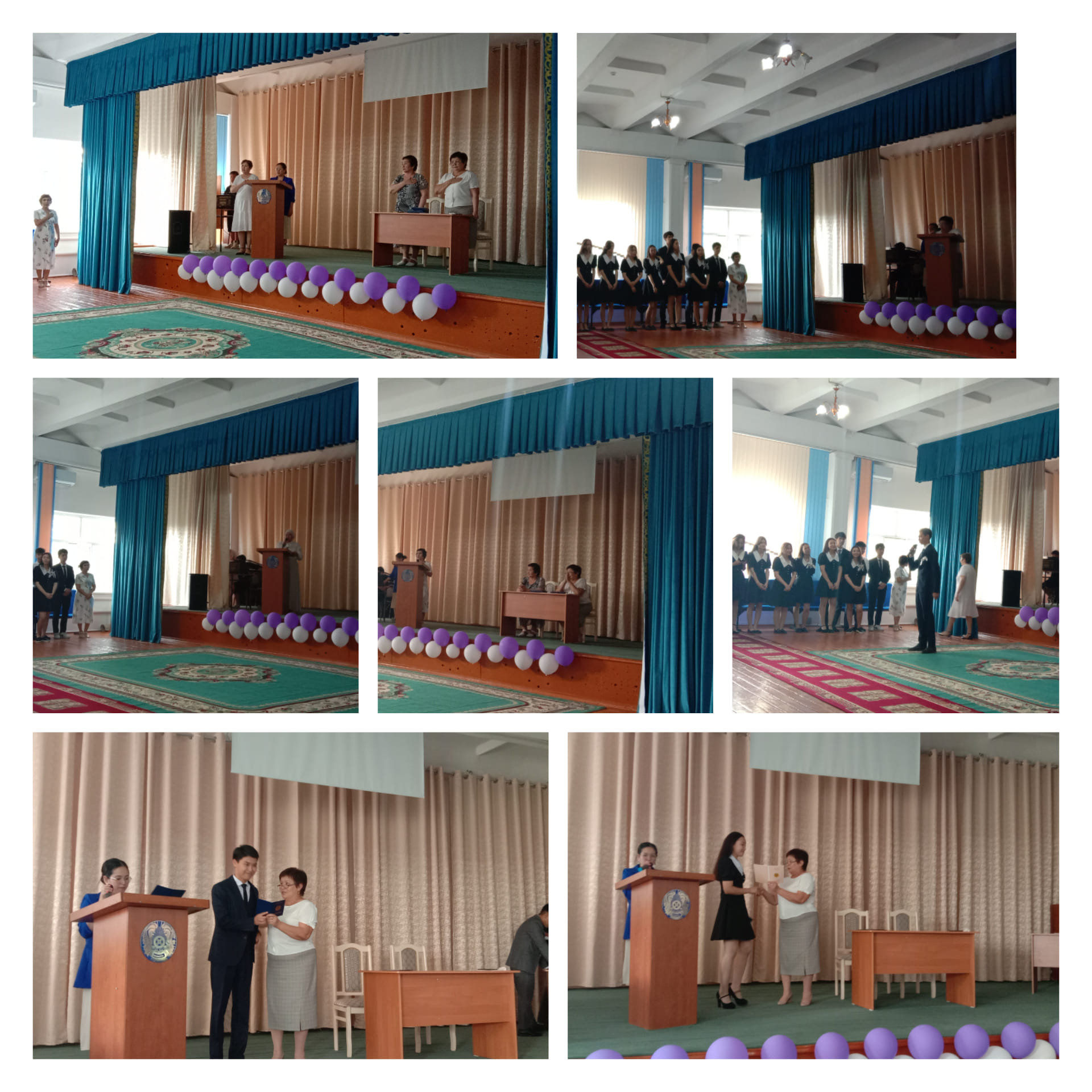 Мектеп директорының міндетін уақытша атқарушы С.Жаниева бітіруші түлектерге жалпы орта білім туралы аттестатпен жекелеген пәндерді үздік оқып, мектеп өміріндегі қоғамдық шараларға белсене ат салысқан, мектеп абыройын асқақтатып жүрген дарынды шәкірттерге айрықша мақтау қағаздарын табыстады.