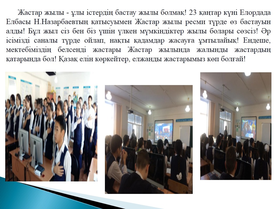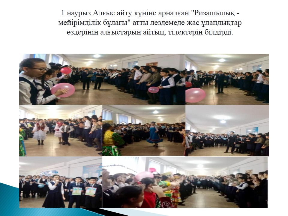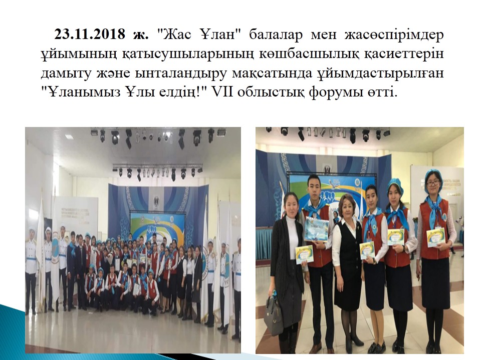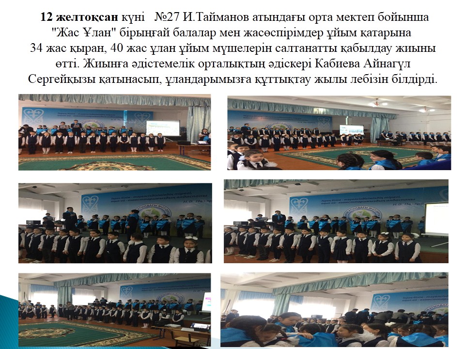 Оқушылар Республикалық бірыңғай «Жас Ұлан» ұйымының қатарына кіре отырып, Қазақстан Республикасының патриоты болуға, Мемлекеттік Рәміздерді құрметтеуге, дәріптеуге, туған елін, жерін мақтаныш етуге, ата – анасын қадірлеуге, салауатты өмір салтын ұстануға, Тәуелсіз еліміздің білімді, жігерлі, парасатты, отансүйгіш азаматы болуға салтанатты түрде ант берді.