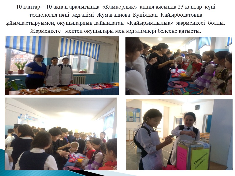 30 қараша күні 1 желтоқсан - Тұңғыш Президент күніне орай "Елбасы мұраты - салауатты Қазақстан" атты 5 сынып оқушыларының қатысуымен эстафеталық жарыс өтті.