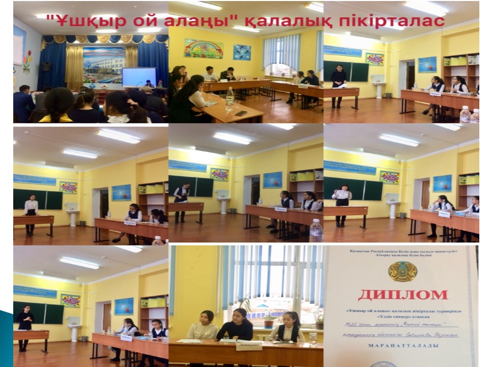 2022 жылдың 14-15 сәуір күндері 7 - 10 сыныптың қыз балаларына кеңес беру мақсатында Атырау қалалық №3 емханананың акушер - гинекологы Шакибалиева Гулфара және психолог маман Балтаева Айнурмен "Ерте жастағы жүктіліктің алдын алу" тақырыбында кездесу өтті. Онда қыздарға ерте жүктіліктің салдары қандай болады; оның адам өміріне тигізетін келешектегі қауіп-қатері қандай; тағы басқада осындай үлкен сұрақтың төңірегінде әңгіме қозғалды. Қыздардың тарапынан қойған сұрақтары мен пікірлері талқыланды. Кездесу соңында жасөспірім қыздарға салауатты өмір салтын ұстануға, өз денсаулықтарына жауапкершілікпен қарауға кеңестер берілді.