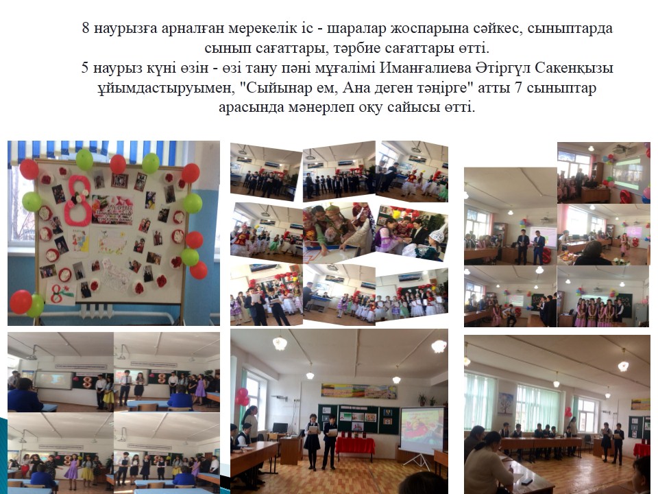 12 мамыр - Экологиялық білім күніне орай сыныптарда сынып сағаттары мен ашық сабақтары өтті.