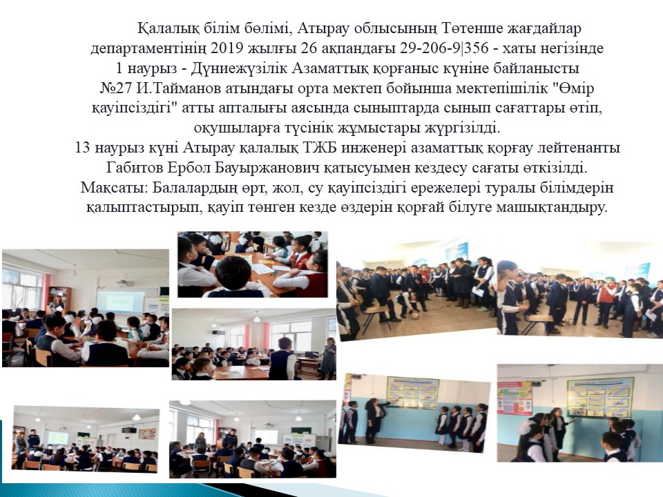 Атырау қаласы білім бөлімі, төтенше жағдайлар басқармасының