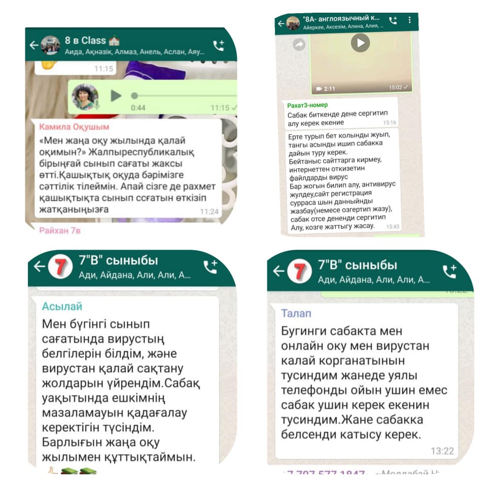 Аталған мәселелер бойынша әр сынып жетекші сынып сағатын қашықтық форматында өткізіп, оқушылардың ойларын тыңдады.