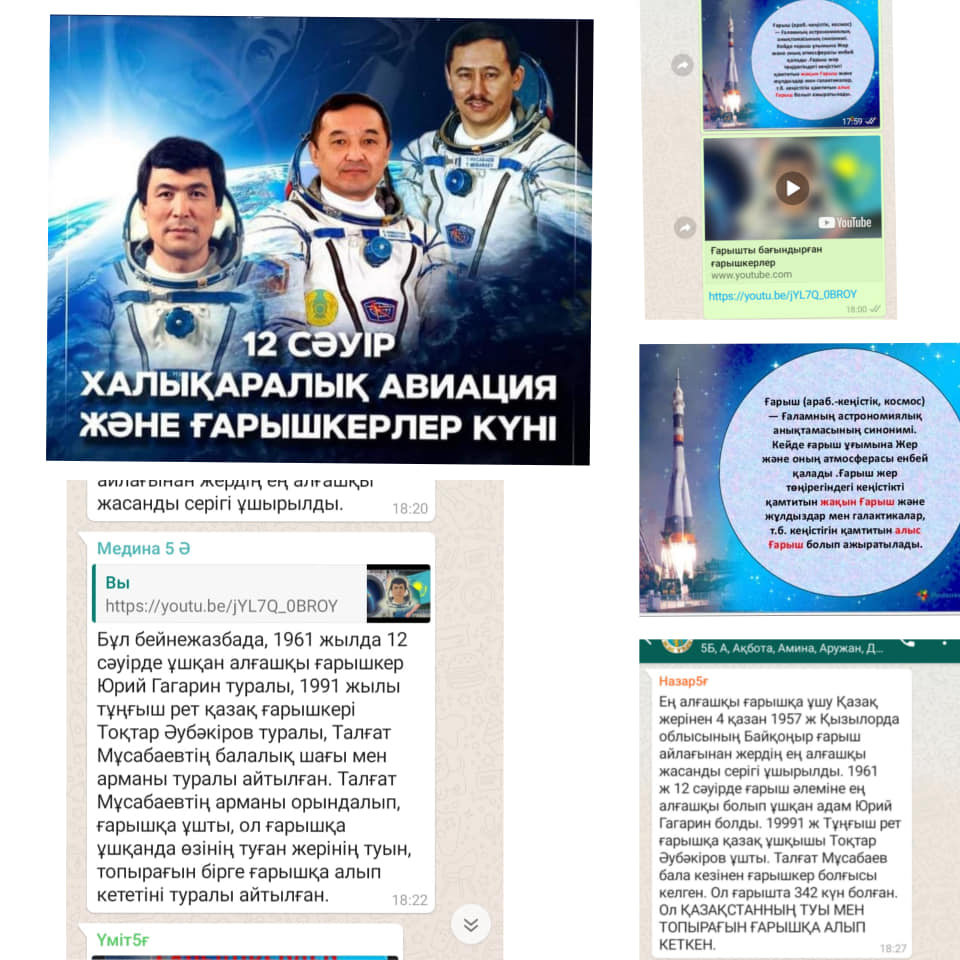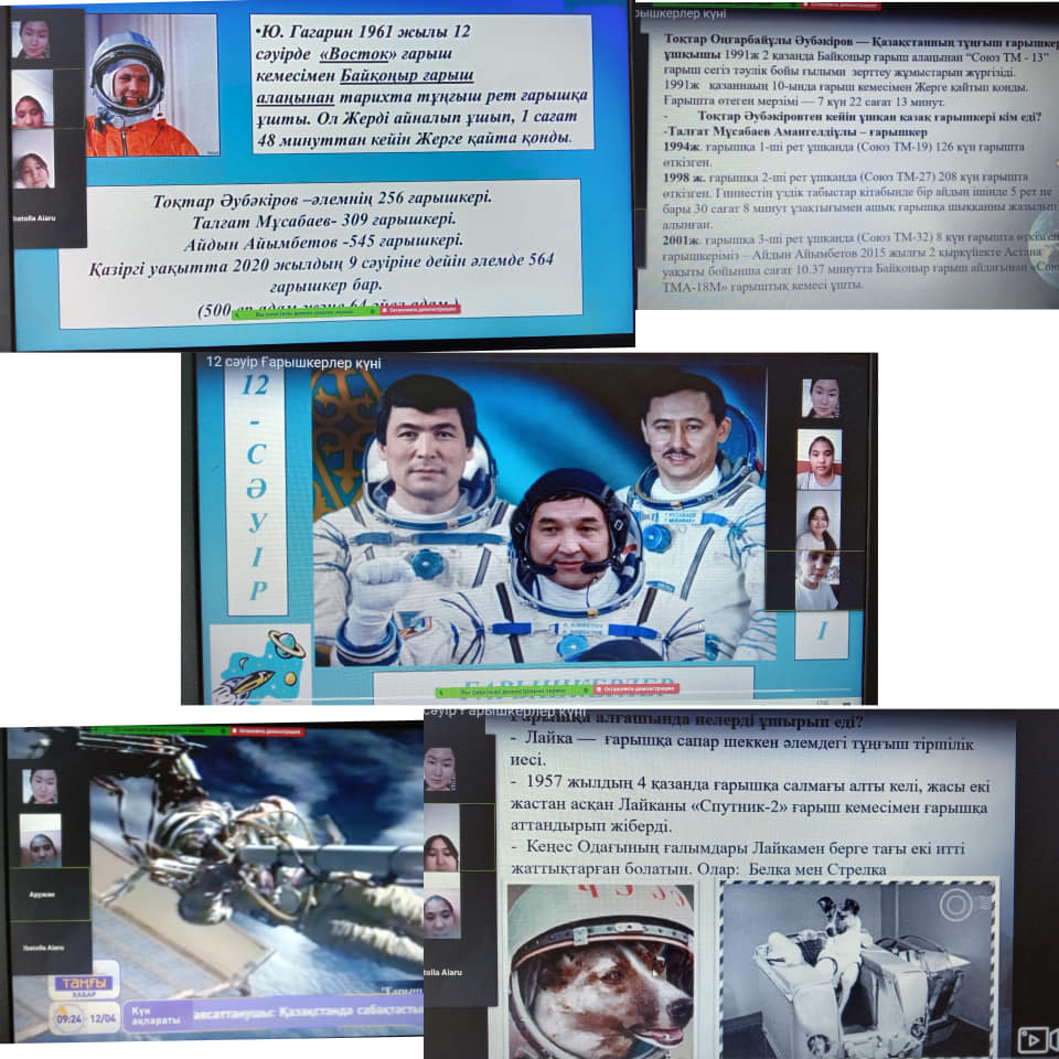 12 сәуір – ғарышкерлер күніне орай Адамның алғашқы ғарышқа ұшуына 60-жыл толуын мерекелеу мақсатында жасақталған жоспарға сәйкес, "Ғарыш әлеміне саяхат" тақырыбында сынып сағаттары ұйымдастырылды.