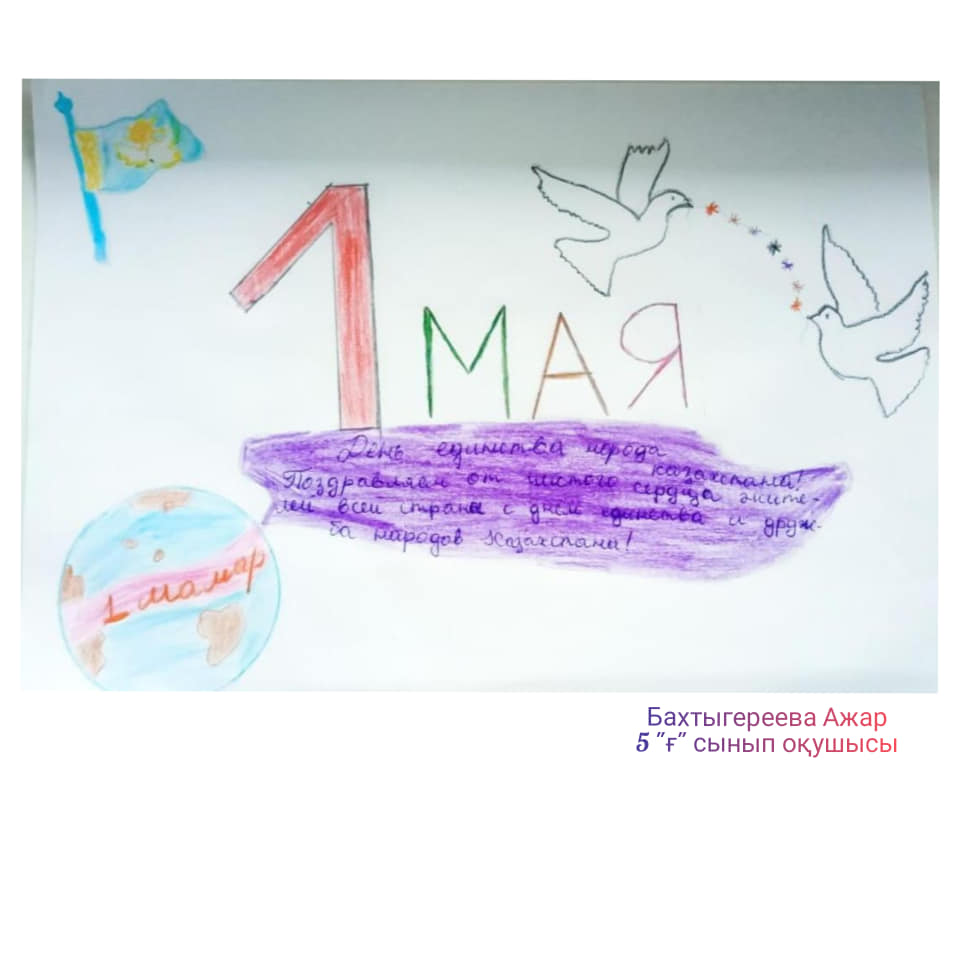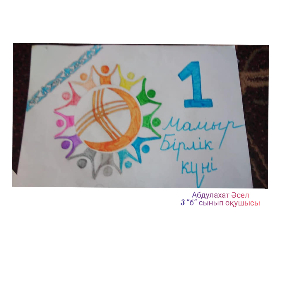 1 мамыр  - Қазақстан халқы бірлігі күнін мерекелеу аясында іс шаралар жоспарына сәйкес "Бірлік, Достық, Ынтымақ" атты онлайн режимінде сурет көрмесі ұйымдастырылды.