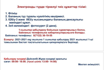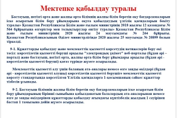🔹️ Бірінші сыныпқа келетін балалардың құжаттарын қабылдау 1-сәуірден басталған болатын және 1-тамызға дейін қабылданады.