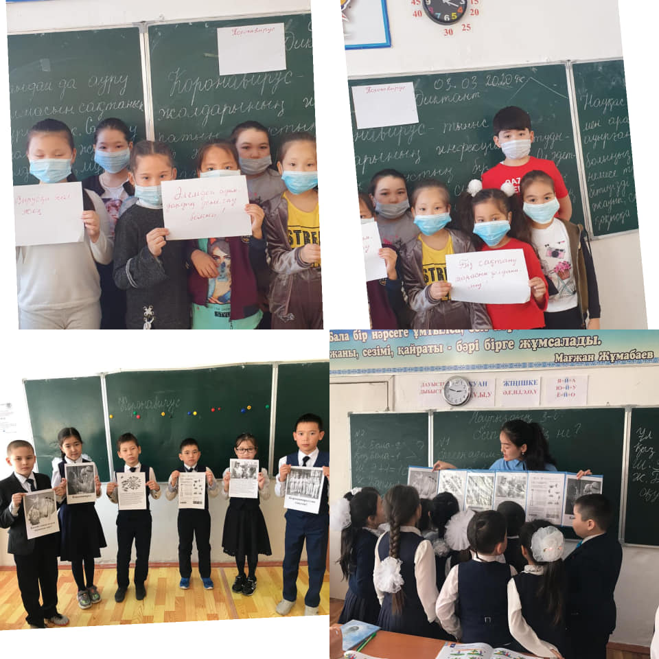 Қалалық білім бөлімінің 2020 жылғы  28 ақпан №15-4-10/526 санды хатына сәйкес, Қазақстан Республикасының білім және ғылым министрлігінің 2020 жылғы  27 ақпандағы №5-11-2/778-И хатын басшылыққа ала отырып, Қазіргі уақытта шет елдерде коронавирустың жедел тарауына байланысты, вирустың алдын алу мақсатында коронавирустық инфекцияға күдікті кездегі іс-әрекеттер және алдын алу шаралары бойынша мектебімізде мектеп медбикесі Г.Алипкалиевамен бірлесе отырып, «Коронавирустан сақтанайық!» тақырыбымен ақпараттық бұрыш жасақталып, ата-аналарға, оқушыларға түсіндірме жұмыстары ауқымды түрде жүргізілді. 1-11 сыныптар арасында «Этиологиясы белгісіз пневмония (коронавирус)» тақырыбымен диктант жұмыстары жүргізілді.