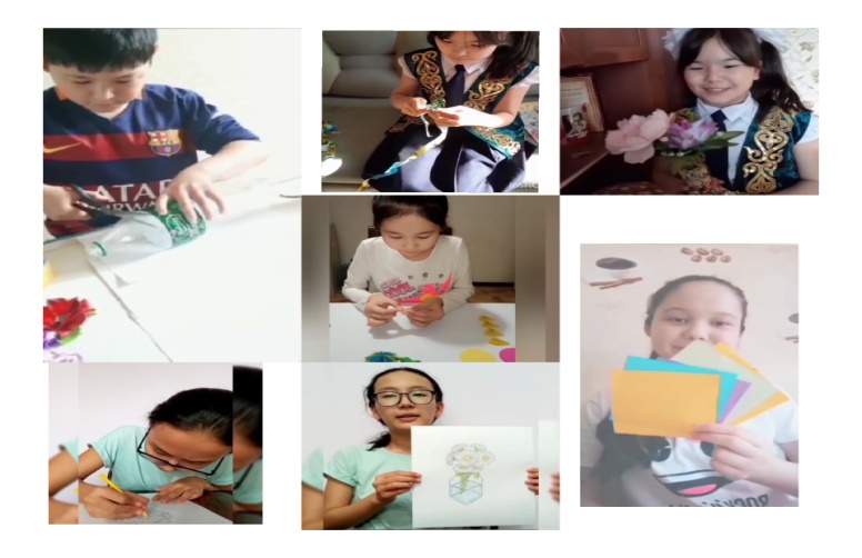 Тәрбие жұмысының қашықтан оқу жүйесіне көшуіне орай сәуір айының айлық жұмыс жоспарына сәйкес оқушылардың бос уақытын тиімді пайдалану мақсатында 5 – 9 сыныптар арасында «Мен бос уақытымда….» және “Шебердің қолы – алтын” тақырыбында оқушылар қолөнер бұйымдарын жасады.