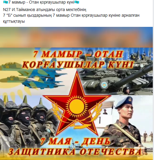 7 мамыр – Отан қорғаушылар күніне орай “Ұранды елдің – ұрпағы қайсар” атты қашықтықтан сынып сағаттары өтті.