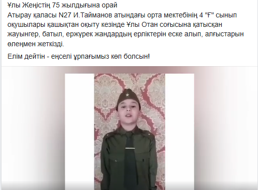 Атырау қалалық білім бөлімі, Облыстық білім беру басқармасы әдістемелік орталығының №343 санды хаты негізінде оқушыларды Отанын сүюге, оны қорғауға баулу, оның тарихына деген сүйіспеншіліктерін арттыру, жеңіс салтанатын көре алмай кеткен боздақтардың ерлік істеріне тағзым етуге, өз халқымыздың тарихын құрметтей білуге, дүние жүзіндегі басқа ұлт өкілдерінің достығын нығайтуға, оларға патриоттық тәрбие бере отырып, өз елін, жерін қастерлейтін саналы да парасатты азамат етіп тәрбиелеу мақсатында 9 мамыр – Ұлы Отан соғысындағы Жеңістің 75 жылдығына орай, “Батырларды еске алуға арналады” тақырыбы аясында бірыңғай онлайн сынып сағаттары өтті.