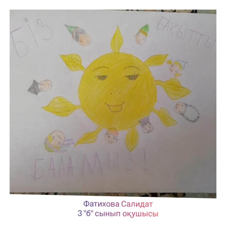 1 маусым – Халықаралық балаларды қорғау күніне орай “БАРЛЫҒЫ БАЛАЛАР ҮШІН” республикалық акцияны өткізу бойынша “Біз бақытты баламыз!” тақырыбында онлайн сурет байқауының қатысушылары:
